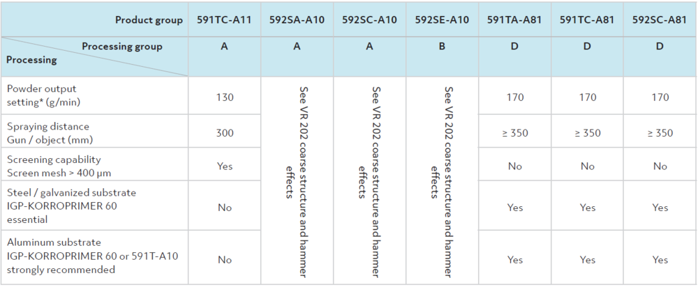 The articles in the LivingSurfaces group are divided into two processing categories "A" and "D". You can recognise the category of your product on the container label of your powder coating.