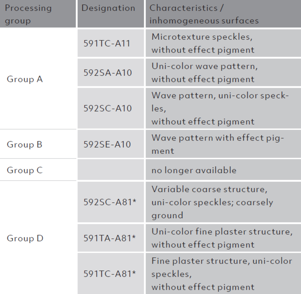 If ordered at the same time (591TX-A81 or also 592SX-A81 with the fine structure 591TX-R10), the article variants can be produced in a practically coordinated manner.