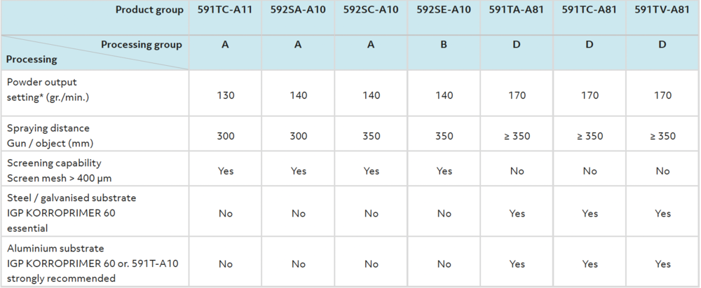| Substrate Aluminium IGP-KORROPRIMER 60 or 591TA10 strongly recommended | no | Yes |